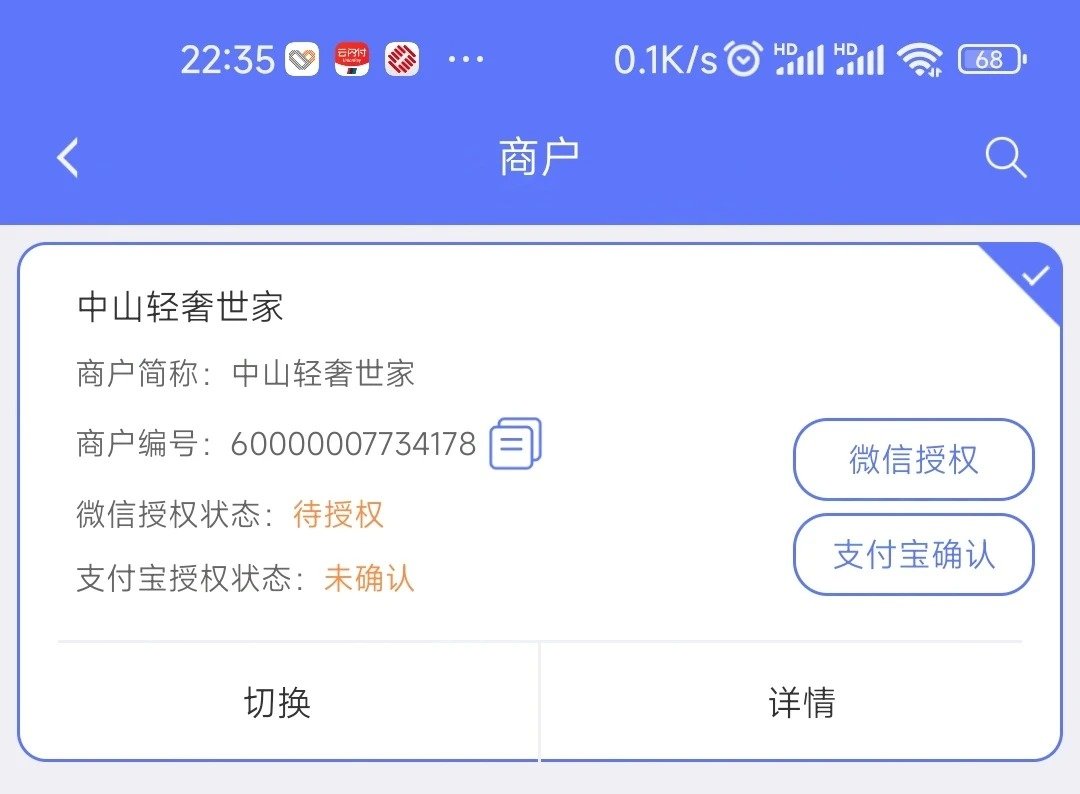 登录星驿付APP,找到我的 我的商户,下面有微信授权 支付宝认证字样;
